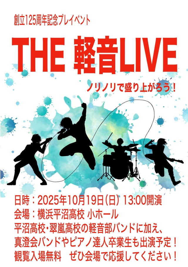 ・イベント名:創立125周年プレイベント「THE 軽音 LIVE」ノリノリで盛り上がろう!