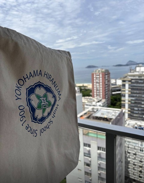 海外から帰国した校友と45年ぶりに再会し、校友数名と2年次(1979年)文化祭時の自主映画作品を視聴。当時の平沼高校の校舎内や職員室、屋上の風景、岡野公園など時の懐かしい映像を見る中、しばしの時間タイムスリップを楽しみました。次回はもっと多くの仲間と視聴する予定です! 写真の平沼の校章は地球🌏を何周も旅しています。 花橘トートバッグもブラジルデビューしました。