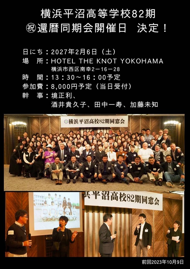 皆さん、ぜひまた近いうちにお会いしましょう!!【横浜平沼高校84期同期会事務局】