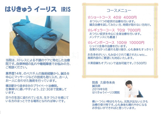 久保寺未央さん(100期)の近況報告。はりきゅうイーリス、頑張っています。