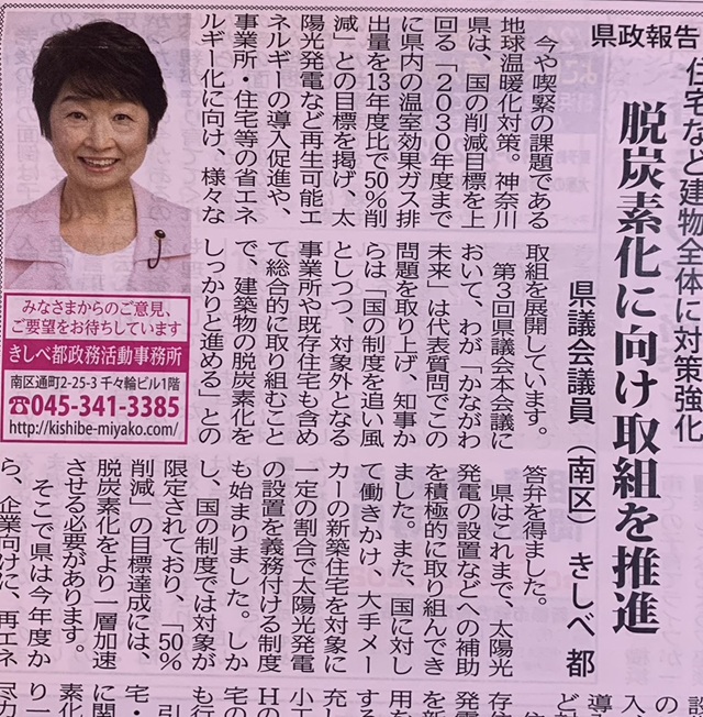 岸部(本間)都さん(74期)、県政報告がタウンニュースに掲載されました