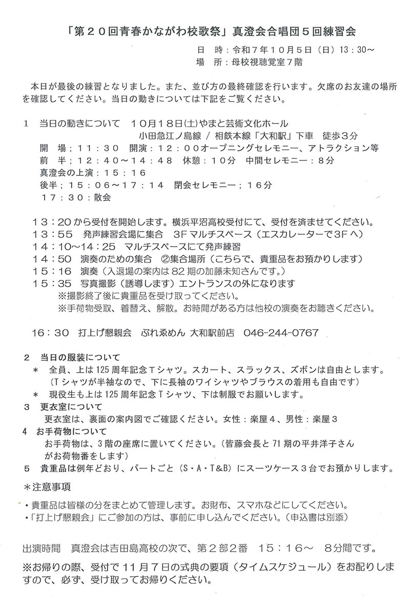 2025年9月21日(日)、母校・横浜平沼高校小ホールにて、かながわ校歌祭に向けた「第4回練習」が行われました。