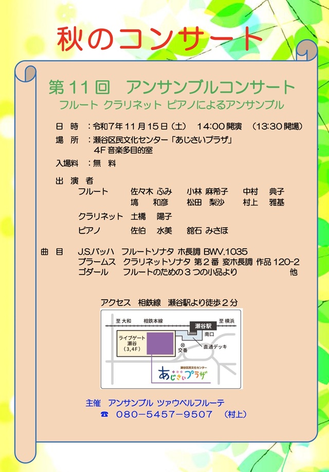 村上雅基さん(77期)秋のコンサート11月15日(土)@瀬谷区民文化センター「あじさいプラザ」