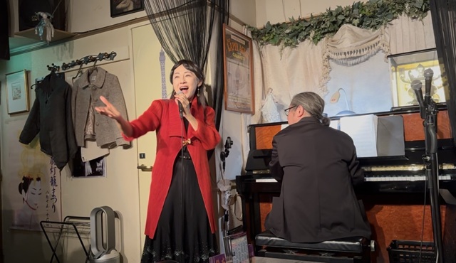 2025年11月22日(土)、銀座ボンボンにて、吉岡小鼓音さん(79期、歌手)のシングルライブが開催されました。砂原嘉博さん(80期、ピアニスト・キーボードプレーヤー)がピアノで共演され、会場は音楽ファンの方々で賑やかに盛り上がりました。