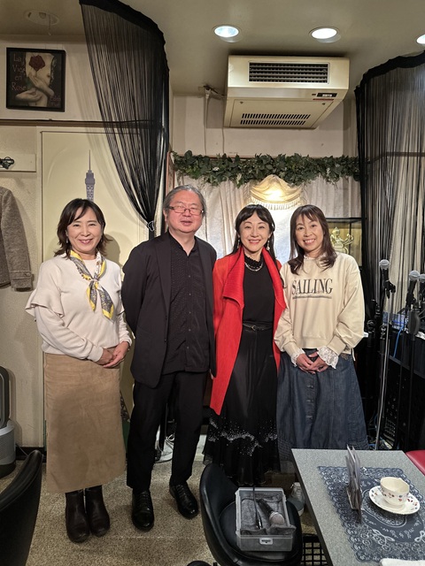 ライブは二部構成で行われました。第一部では、ポップスを中心に、高校時代の思い出や砂原さんとの出会いなどのエピソードも交えながら進行。松田聖子や八神純子など、1970年代の懐かしい曲が披露され、観客は小さなライブハウスの一体感を楽しみながら、心地よい時間を過ごしました。砂原さんは軽妙なトークで「今はどう見ても僕のほうが年上ですが、後輩です」と笑いを誘い、和やかな雰囲気を作っていました。