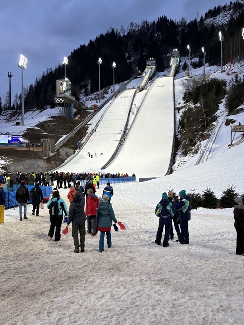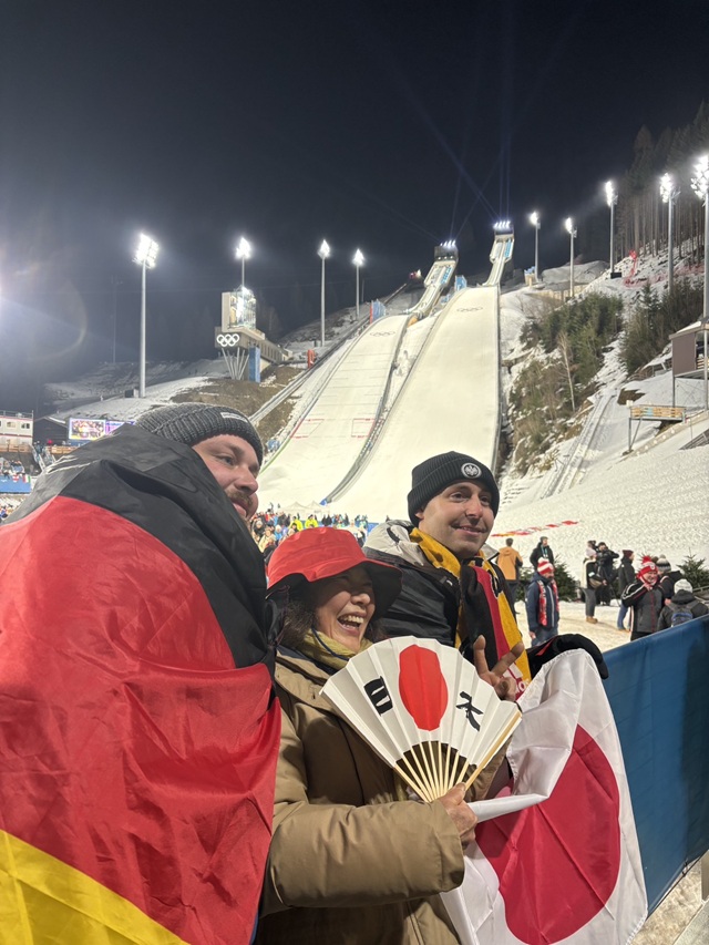 写真:「スキーJUMP男子ノーマルヒルで、優勝したドイツの応援の人達と、二階堂選手の銅メダルをお祝いしました」