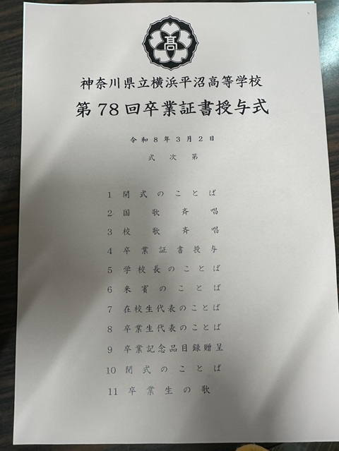 第78回卒業式が挙行されました。(2026) 2026年3月2日(月)、第78回卒業式が挙行されました。123期、311名の皆さん、ご卒業おめでとうございます。 真澄会より贈呈の壇上花は、玄関に移され飾られております。