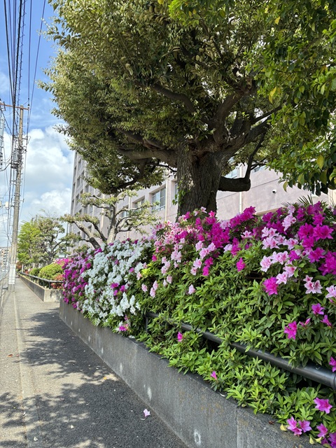 2026年4月14日(火)、母校では、桜の後のツツジが綺麗です。